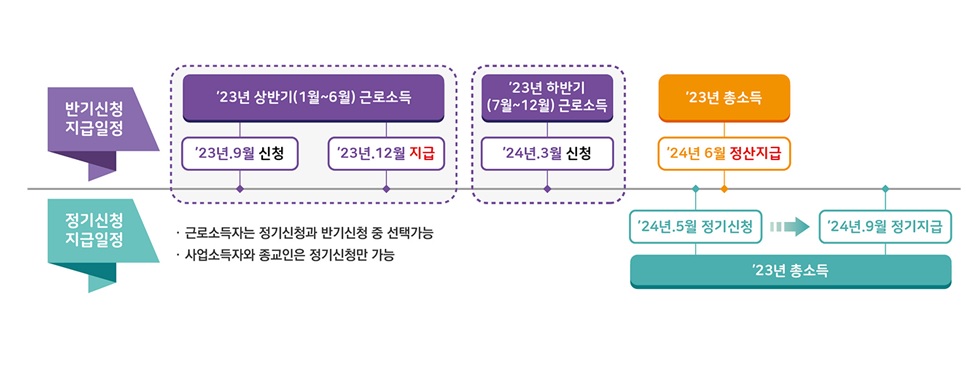 정기신청 : 5.1.~5.31. 반기신청 - 상반기분 신청 : 전년도 9.1.~9.15. - 하반기분 신청 : 3.1.~3.15.