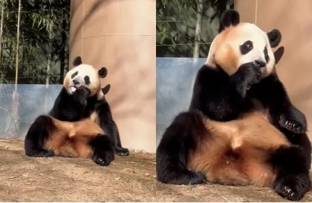 야외 활동 중의 행복: 그러나 야외 방사장에서의 자유를 되찾은 푸바오는 몹시 기뻐하는 모습을 보였습니다.