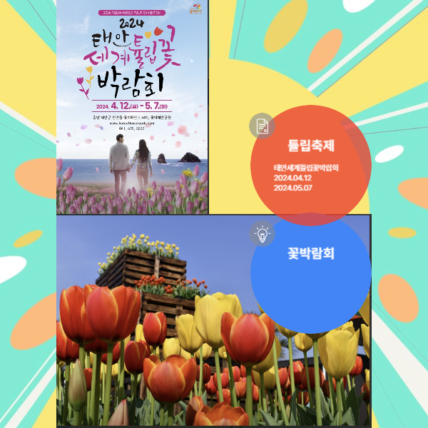 세계 5대 튤립 축제 중 하나로 꼽히는 태안 튤립 축제는 아름다움과 축제의 상징으로, 가까운 곳은 물론 멀리서도 방문객들을 불러 모아 튤립의 화려한 세계로 안내합니다. 이 가이드를 통해 2024년 이 화려한 꽃의 낙원을 방문하기 위해 필요한 모든 정보를 제공하고자 합니다. 튤립으로 가득 찬 아름다운 풍경 속에서 잊지 못할 경험을 하실 수 있도록 해드리겠습니다.