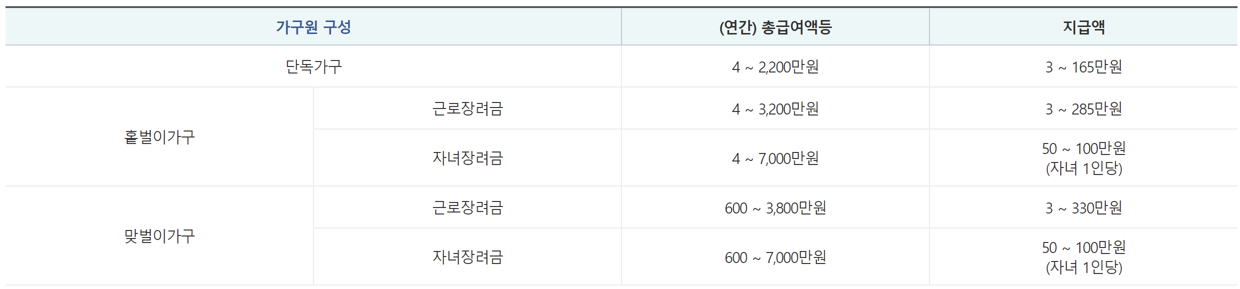 -홑벌이가구 : 최대 285만원