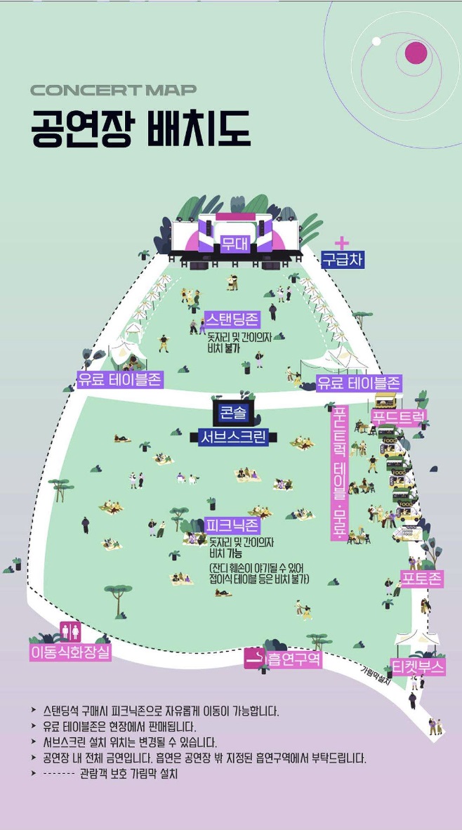 푸드트럭, 포토존, 스탠딩존, 피크닉존, 유료테이블(입장 후 현장 유료판매)