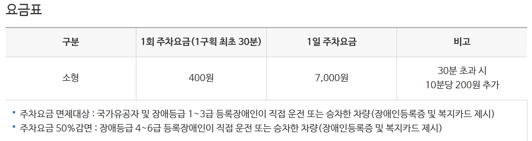 주차요금 : 선불권(종일) 4,000 , 1시간당 1,000원